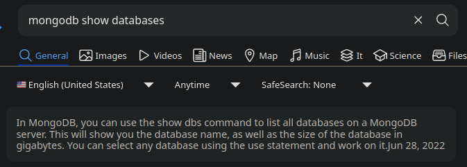 **What is the command used for listing all the databases present on the MongoDB server? (No need to include a trailing ;)**