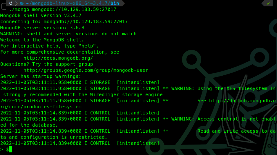 With this, lets connect to the mongo databse on the target machine